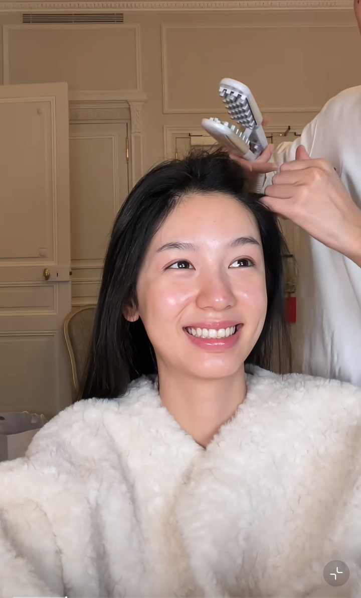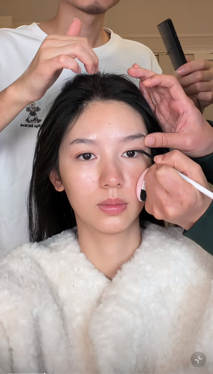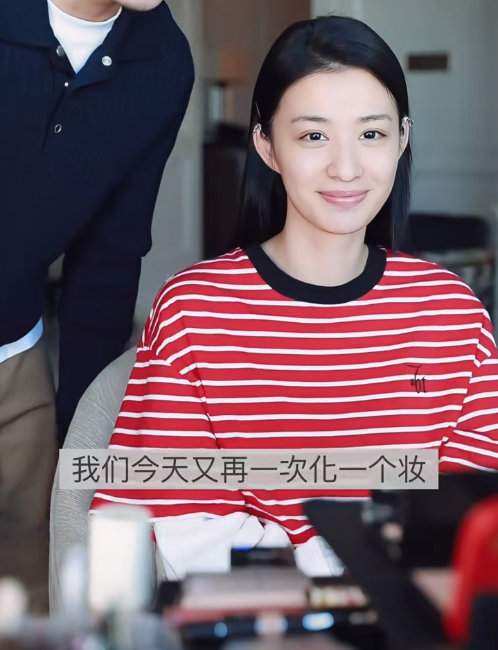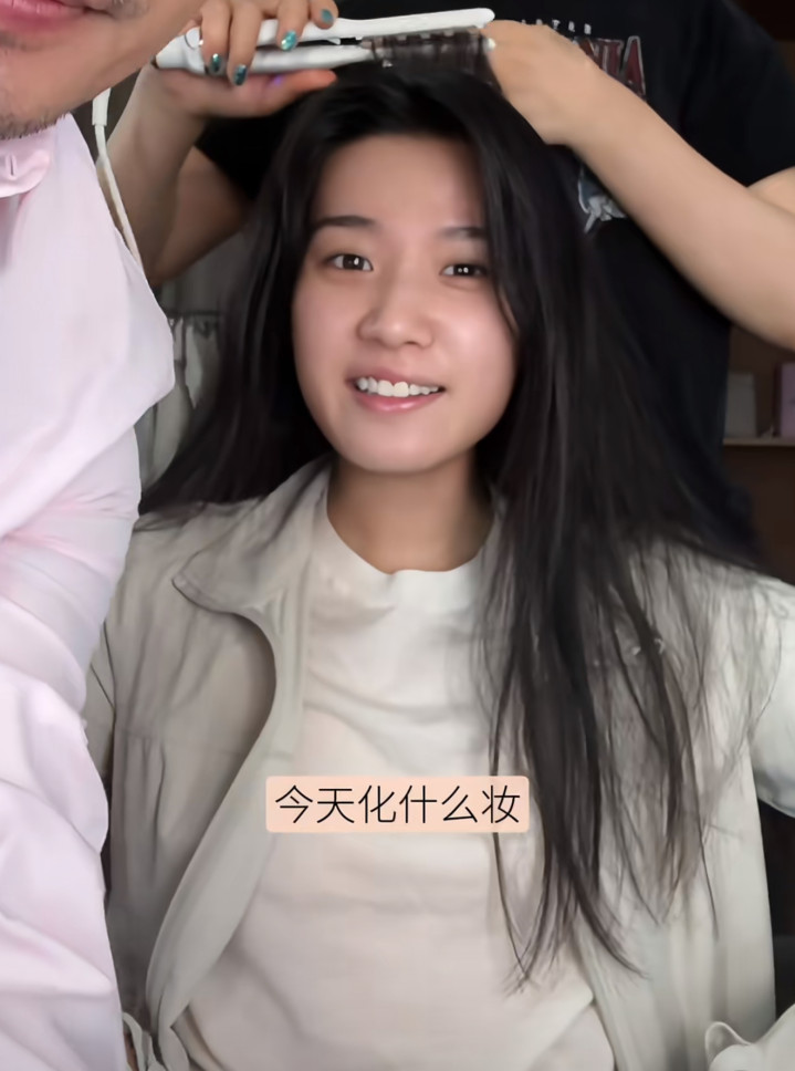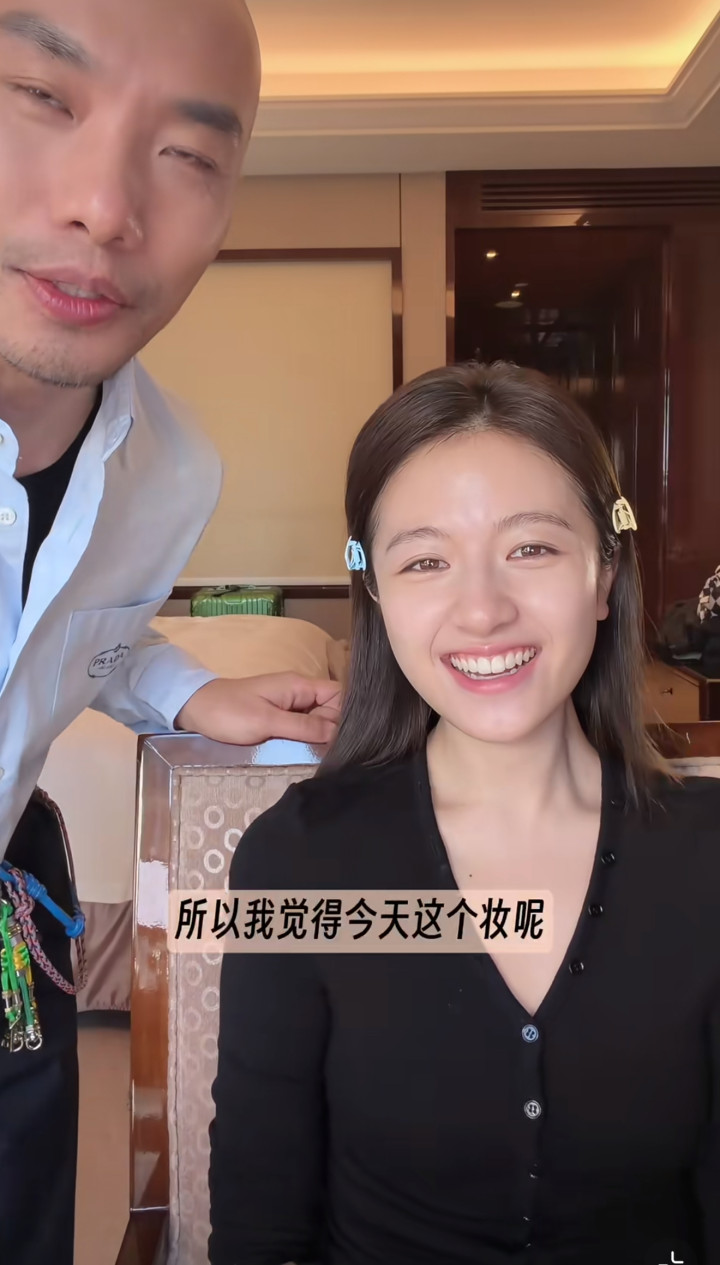 但在化妆师镜头里,她素颜也还挺漂亮的,眼睛不上妆也大而亮堂,就是法则纹有点深,看起来有少量点窘况,举座颜值也曾在线的。
