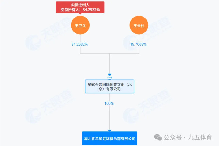 四、湖北后生星足球俱乐部该俱乐部确立于2016年7月8日,注册成本为500万元,法定代表东谈主是崔佳玮。股权结构是星辉合盛海外体育文化(北京)有限公司握股100%,最终本体截止东谈主是王卫兵。