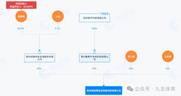 十、贵州贵阳竞技足球俱乐部该俱乐部确立于2023年5月12日,注册成本为100万元,法定代表东谈主是张智。股权结构是贵州综楦信息相关作事有限公司握股65%、贵州集隽半导体科技有限公司握股15%、范小梅握股10%、王艺鲆握股10%,最终本体截止东谈主是周煜明。