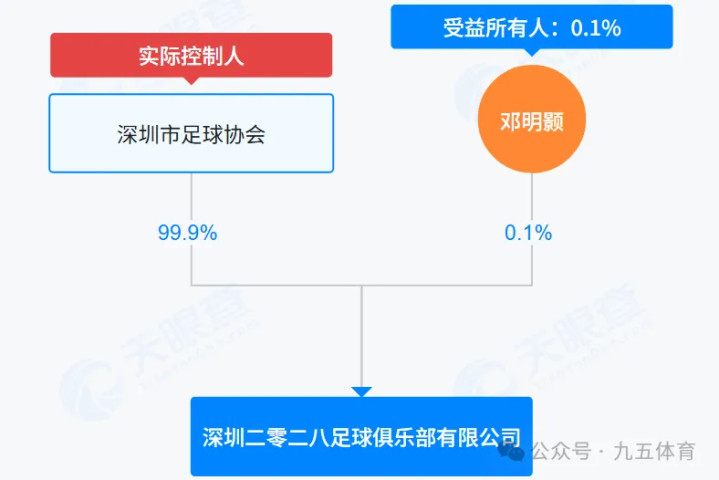八、深圳二零二八足球俱乐部该俱乐部确立于2023年11月2日,注册成本为300万元,法定代表东谈主是邓明颢。股权结构是深圳市足球协会握股99.9%、邓明颢握股0.1%,最终本体截止东谈主是深圳市足球协会。