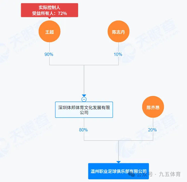 七、温州行状足球俱乐部该俱乐部确立于2020年1月10日,注册成本为500万元,法定代表东谈主是王超。股权结构是深圳体邦体育文化发展有限公司握股80%、陈都昂握股20%,最终本体截止东谈主是王超。