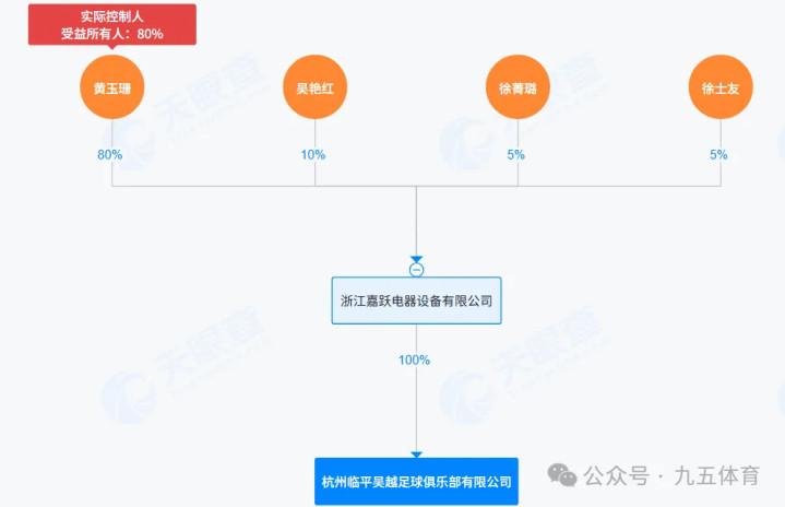 五、杭州临平吴越足球俱乐部该俱乐部确立于2022年12月21日,6686体育官方网站注册成本为10万元,法定代表东谈主是黄旭。股权结构是浙江嘉跃电器开采有限公司握股100%,最终本体截止东谈主是黄玉珊。