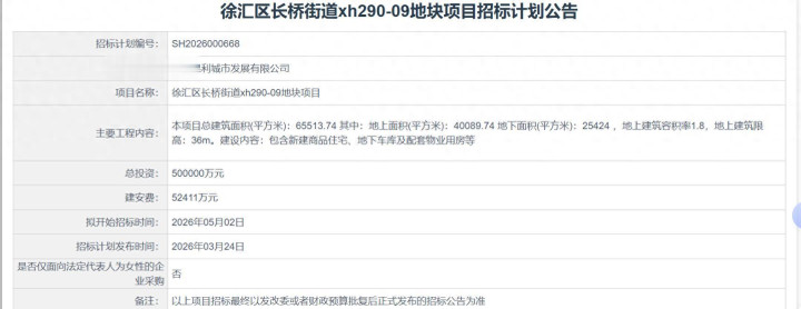 上海进深 李兰3月24日,据上海市住房和城乡缔造处置委员会网站,徐汇区长桥街谈xh290-09地块名堂招标认识公告讦布,缔造单元为上海保利城市发展有限公司。